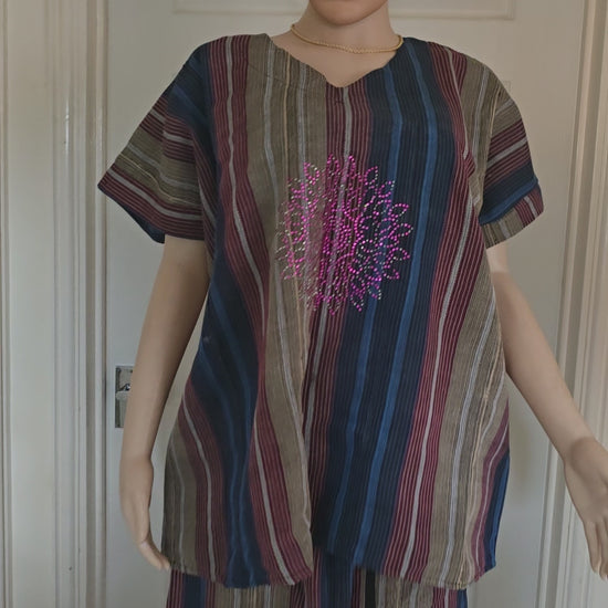 This women’s ready-to-wear Aso Oke combines traditional African craftsmanship with a subtle touch of bling, offering an elegant and refined look. Crafted from quality fabric, it ensures both comfort and style for special occasions. Its expertly designed patterns and shimmering accents highlight cultural heritage while providing a polished and sophisticated outfit choice. Perfect for celebrations or formal events, this ensemble blends authenticity with modern elegance.